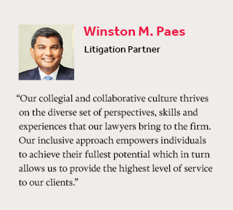 Inclusion is a bedrock of our culture. This commitment stems naturally from the values that shape our firm. To continue to flourish, our firm will strive to recruit and develop the finest talent of all backgrounds and beliefs. We will build and sustain a community that respects the different backgrounds, perspectives, and experiences of our colleagues. We deeply value collaboration and collegiality, and we seek these characteristics in those we select to represent the firm as partners, counsel, associates, and professional staff.