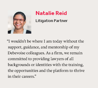 Professional skills development and coaching – Individual coaching support and professional skills training programs are designed to support Debevoise lawyers in mastering key skills in writing, negotiation, team management, presenting and communicating, counteracting implicit bias, business development and other areas critical for success.