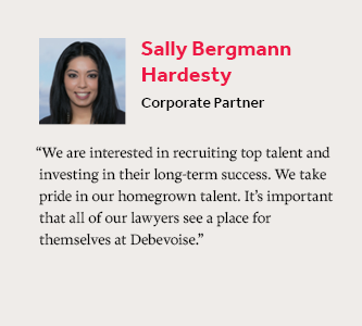 Pro bono work – Debevoise has a long-standing and widely recognized commitment to pro bono work. All lawyers, including summers, are encouraged to contribute to firm pro bono work while building their lawyering skills.