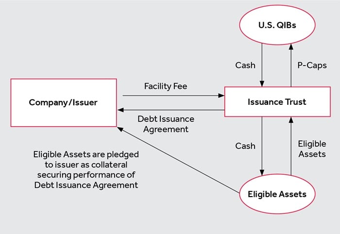 - Standby Credit. The immediate liquidity offered by P-Caps provides for a reliable source of financing during a stress event. P-Caps are a form of standby credit which is available prior to maturity regardless of market windows, broader economic conditions or issuer specific events. This is significant, as other avenues of capital may be unavailable or prohibitively expensive during a liquidity shortfall. For example, in contrast to a revolving credit facility, there is no counterparty risk when the company wants to draw on the facility because the Eligible Assets are on hand with the trust and the trust is contractually obligated to provide the Eligible Assets in exchange for the company’s senior notes.
