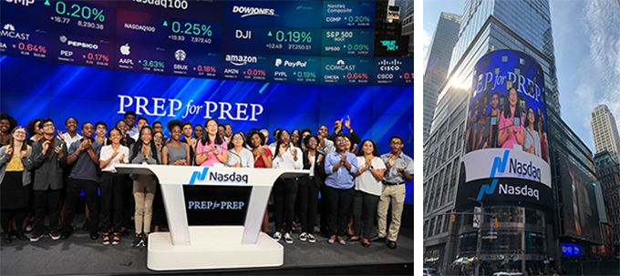 On July 31, Sue Meng, partner at Debevoise & Plimpton LLP and Prep for Prep alumna, joined 9th and 10th grade students from Prep’s summer entrepreneurship program to ring the NASDAQ opening bell. Opening the NASDAQ with Prep students is another step in Sue’s long involvement with the organization that she credits with supporting her academic trajectory, which took her to Brearley, Harvard, Oxford and Yale Law School. Today, Sue is a member of the Prep for Prep Board of Trustees and Executive Committee, the first alumna to serve on the Board ‒ her way of giving back to the organization that so profoundly impacted her life.